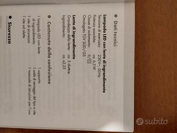 Lente di ingrandimento con Led. Nuova, mai usata.