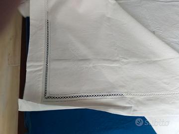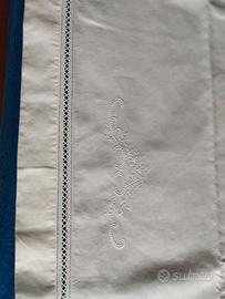 Lenzuola n.1 cotone antica ricamata a mano h.250xl 235(piccola macchia come da foto n.5)