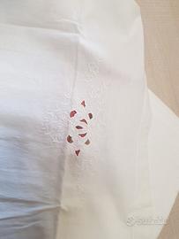 vendo 2 lenzuola sopra di lino finemente ricamate a mano con fodera per cuscino singola coordinata per ciacun lenzuolo.