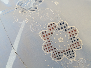Lenzuola matrimoniali ricamate a mano di altri tempi Misure 270cmx220cm Bellissime Adatte per corredo Colore celeste
