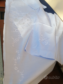 Lenzuola di lino ricamate a mano di altri tempi Nuove mai usate Trovate in un baule da corredo Federe 76cmx50cm Lenzuola 220cmx280cm Colore celeste