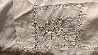 Lenzuola di lino ricamato completo di copricuscini