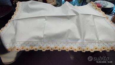 Eleganti lenzuola di ottima qualità della nota azienda Frette in cotone come seta ricamato con motivo floreale colori oro e ocra misure in etichetta