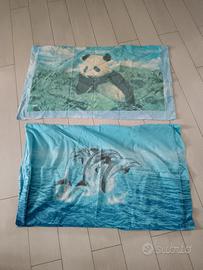 - € Trapunta autunno/primavera Bassetti made in Italy, linea Silvestro e Titti, 100% cotone, imbottitura poliestere. OTTIMO STATO. Singolo, cm. 160 x 250. - € 15 Copriletto singolo, tessuto più doppio del classico cotone, con motivo Luna e Stelle, cm. 265 x 135. Si prega di notare, come si evince dalla foto, che c'è un filo "tirato/scucito" che comunque non pregiudica lo stato del prodotto. - € 25 Bellissima e coloratissima trapunta copriletto primavera autunno, singola, cm. 170 x 250. COME NUOVA. -€ 20 Lenzuolo singolo cm. 270 x 130, con federa cm. 45 x 80 con bottoni, in flanella, caldissimo. COME NUOVO. - € 20 Lenzuolo copriletto singolo 70% cotone 30% poliestere, misura cm. 150 x 270, con due federe per cuscino, stesso tema (delfino e panda). COME NUOVO.