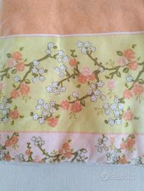 Lenzuola vintage letto singolo in flanella di cotone fantasia a fiorellini nei toni pastello verde e a arancio. lenzuolo sotto e sopra, senza federa. Articolo nuovo, rimasto a lungo nell'armadio, da rinfrescare. (Disponibili altre 4 parure in flanella di cotone, con federa, scrivetemi per le foto.)