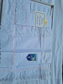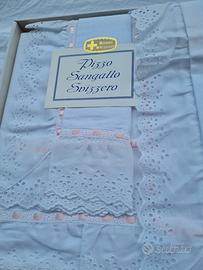 lenzuolo matrimoniale con federe, pizzo sangallo, linizzato, parte superiore, confezione originale, ricami svizzeri