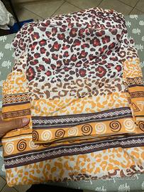 Vendo a copparo lenzuolo matrimoniale composto da sotto,sopra e due federe Molto leggero .. motivi un po' particolari :leopardato e greche