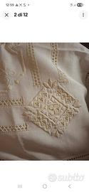 lenzuola Matrimoniale In Puro lino ricamato a mano in punto antico,colore beige.