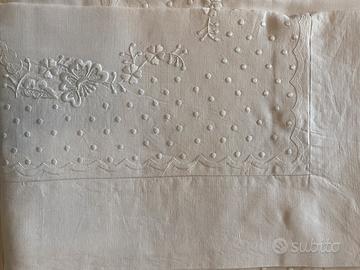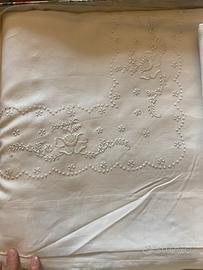 Vendo diversi set di lenzuola ricamate a mano, in puro lino, mai usate. Ogni set completo di lenzuolo matrimoniale e due fodere.