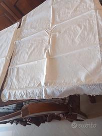 Lenzuola matrimoniali in puro cotone bianco con fiorellini ricamati e inserto in pizzo uncinetto tombolo federe e Lenzuola sopra con motivo di smerlatura