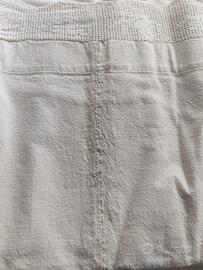completo matrimoniale vintage XL ricamato e cucito a mano, bianco su bianco