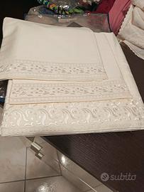 lenzuola sotto più sopra, più due federe 100per cento cotone, matrimoniale colore panna marca Trussardi home