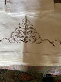 Vendo lenzuola ricamate a mano complete di lenzuolo sopra due federe e lenzuolo sotto piu asciugamano sempre ricamato