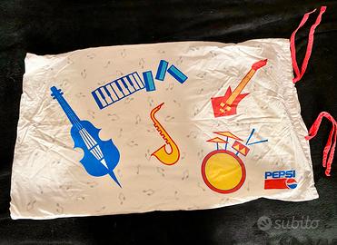 Lenzuola per letto singolo Pepsi Cola vintage, in ottimo stato, made in Italy, prodotte da Zucchi in puro cotone. Federa del cuscino a tema musicale. Misure: Sopra 140x260 cm Sotto 80x180 cm Federa 45x75 cm Ritiro a Roma o spedizione