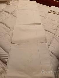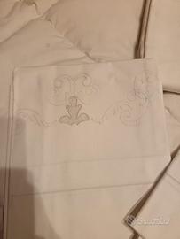 Lenzuola ricamate a mano con federe.
