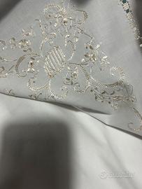 Vendo lenzuola broderie cotone percalle con ricamo a mano (con filo in seta )per tutta la balza .