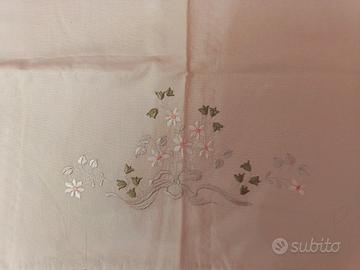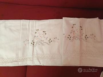 Lenzuola matrimoniale sopra con due federe in cotone 100% ricamate a mano arte fiorentina con bordo a uncinetto pezzo unico
