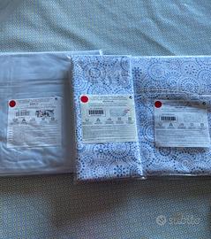Completo di lenzuola per letto singolo, in confezione originale.