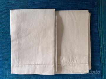 2 lenzuola da sopra singole in lino con pizzo fatto a mano e due federe in lino senza pizzo. MAI USATE.