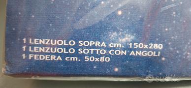 Completo lenzuola letto singolo Sopra 150x280 Sotto con angoli Federa 50x80 nuovo mai usato!