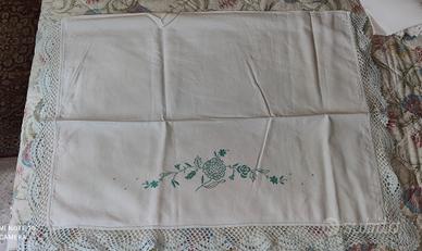 vendo 1 lenzuolo completo di federe con ricamo verde acqua e bordo fatto a mano a uncinetto euro 70 ;