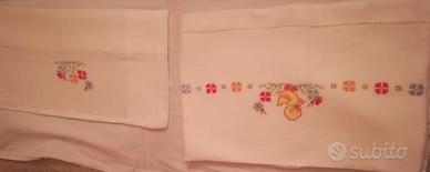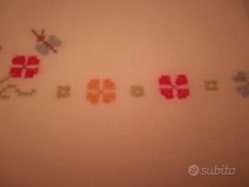 Vendo questo splendido Lenzuolino culla in lino ricamato a mano punto croce.