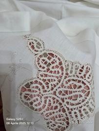 Per veri intenditori! Vendo prestigioso lenzuolo matrimoniale in finissima batista di lino, interamente ricamato a mano e impreziosito da meraviglioso pizzo al tombolo, lavorato a mano con maestria.