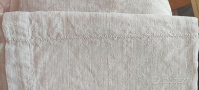 Lenzuolo canapa e cotone, formato da tre teli tessuti al telaio, anni 20/30, non ha macchie, solo qualche piccola imperfezione nella tela che esaltano il lavoro artigianale. I teli sono cuciti a mano e non hanno scuciture. Lenzuolo da corredo mai usato, tessuto fresco, naturale e indistruttibile. Misura 220x260, i teli sono larghi 73 cm e lunghi 260. Per chi ha la passione per il pizzo di Cantù, San Gallo, i merletti al tombolo o all'uncinetto, potrebbe trasformarlo in copriletto inserendo strisce di merletto/pizzo tra i teli. Si presta a qualsiasi trasformazione creativa. #tela #telaiovintage #tessutoamano #corredodellanonna #corredovintage #antique #tessutoantico #canapavintage #canapaecotone #corredodellanonna #coprilettovintage #merlettocantu #tomboloafuselli #uncinettocreativo #ricamo #manidifata #manidoro #lavoricreativi #sartoria