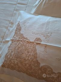 Lenzuolo ricamato +lenzuolo di sotto + federe.
