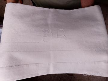 1 lenzuolo in puro lino con ricamo a mano con iniziali GD. misure 2.40 larghezza 2.20 lunghezza. nuovi mai usati