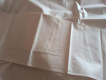 lenzuolo lettino ricamato mai usato con qualche macchiolina xké lasciato dentro l armadio in misto lino