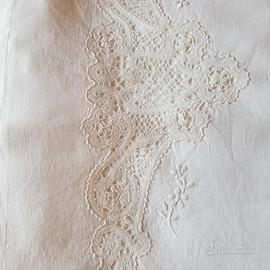 vendo lenzuolo matrimoniale corredato di due federe con pizzo al tombolo realizzato a mano