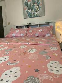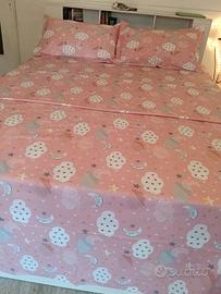 Lenzuolo fatto hand made. Produzione propria. Cottone 100% con stampa digitale. Contiene: -2 fodere 50x70 -lenzuolo sopra 295x240 - lenzuolo sotto 160x190x25