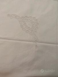 Lenzuolo matrimoniale in lino con pizzo di cantù e ricamato a mano. come nuovo