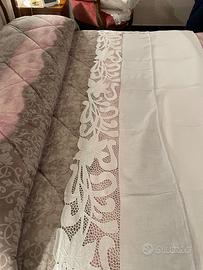 Lenzuolo matrimoniale lino a intaglio