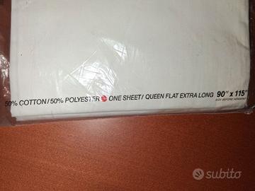 Lenzuolo matrimoniale dimensioni Queen Size cm 229 x 292 in tessuto Mussola, 50% Cotone e 50% Poliestere. Tessuto ottimo e di qualità.