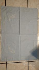 Pregiato lenzuolo matrimoniale, completo di due federe, in un bellissimo color azzurro polvere.
