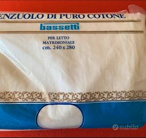 Ottimo lenzuolo matrimoniale in cotone Bassetti. Confezionato a mano con doppio orlo a giorno e bordura ricamata come da foto. Dimensioni 240x280