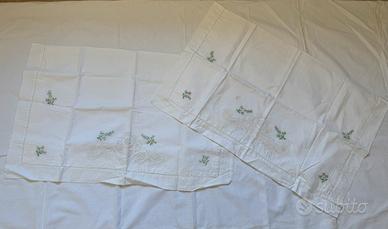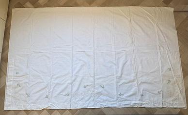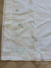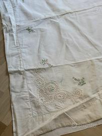 Vendo splendido lenzuolo matrimoniale vintage interamente ricamato a mano, realizzato alla fine degli anni ‘80 e proveniente da un vecchio ricamificio italiano. Un pezzo autentico di artigianato, mai utilizzato e conservato in magazzino per anni. ✨ Caratteristiche: -Ricamo completamente fatto a mano -Elegante pizzo chiacchierino artigianale -Motivo floreale delicato con dettagli raffinati -Nome modello “Rita” visibile sul tessuto -Tessuto pregiato misto lino -Completo di 2 federe per cuscini coordinate 📏 Dimensioni: Lenzuolo: 280 x 230 cm (letto matrimoniale) 🧵 Condizioni: Il lenzuolo non è stato lavato volutamente per preservarne lo stato originale. Sono presenti leggere tracce della stampa a tampone a petrolio, tipica dei ricamifici italiani dell’epoca: ➡️ queste spariscono completamente al primo lavaggio. 📦 Spedizione accurata e prezzo trattabile. Disponibile per ulteriori foto o dettagli.