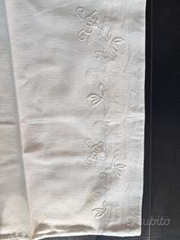 Bellissimo lenzuolo di puro lino ricamato a mano e coppia di federe con ricamo sui due lati Misure lenzuolo: 230x260 Peso Kg 1.155 Misura Federe : 86 x 47 cm peso Kg 0.176