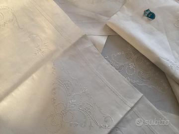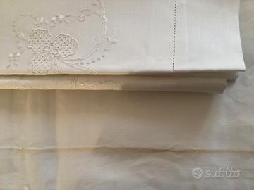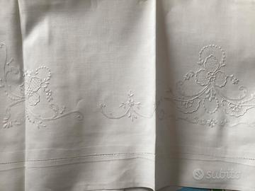 Lenzuolo puro lino ricamo a mano sfilato siciliano