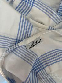 Lenzuolo completo (federa e sotto senza angoli) in puro cotone. Il lenzuolo e la federa sono in fantasia a quadri azzurri mentre il sotto è bianco.