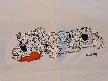 Set di lenzuolo e federa per letto singolo in cotone 100% con ricamo originale Disney Carica 101 prodotto da Emmanuel Schvili in ottime condizioni