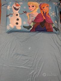 Lenzuolo singolo Disney Frozen composto da lenzuolo con angoli 195cm per 90 cm , lenzuolo sopra 143cm per 270 cm e federa 50 per 75.