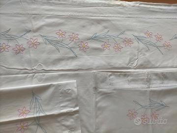 Lenzuolo bianco, Matrimoniale ricamato a Mano con 2 federe.
