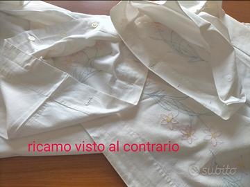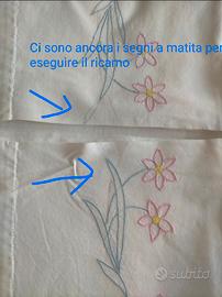 Nuovo, mai usato, in una foto potete vedere ancora i segni a matita fatti per eseguire il ricamo.
