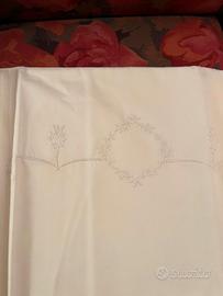 Lenzuolo 240 x 280 cm lavorato a mano inizio 1900 cotone leggero da usare anche per possibile tenda. È solo il sopra del lenzuolo.