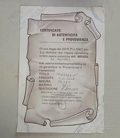 Firmato in basso a destra, sul retro riporta certificato di garanzia.