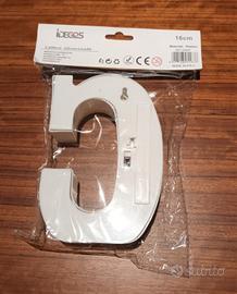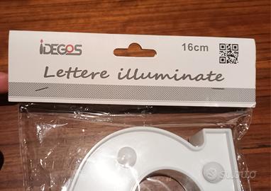 Lettera luminosa alta 16 cm Può essere usata in piedi o appesa Mai usata, sigillata Funziona con pile AAA