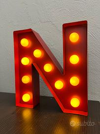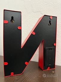 Lettera N luminosa con 11 LED. Perfettamente funzionante. Da tenere su scrivania o da appendere a parete. Misure: base 20 cm ed altezza 22 cm.